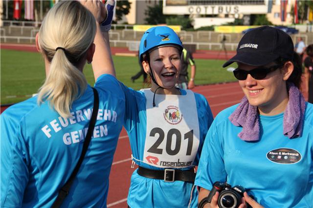 gingen in Lauf 5 an den Start. Das Wasser war schnell am Strahlrohr